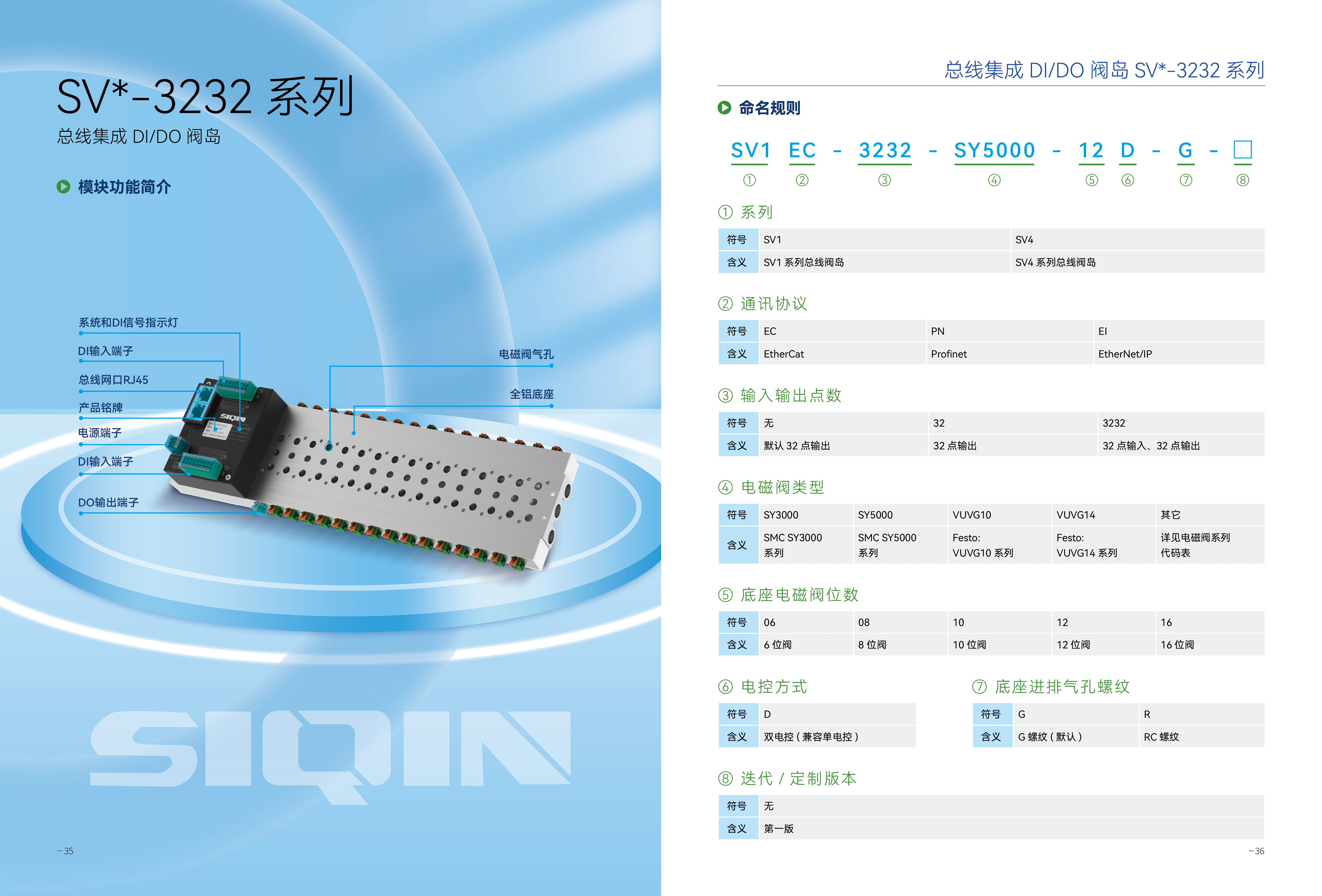 36SV1EC-3232-4RD2-12D-G阀岛 集成32DI 适用4RD2系列电磁阀   12位底座/EtherCAT协议