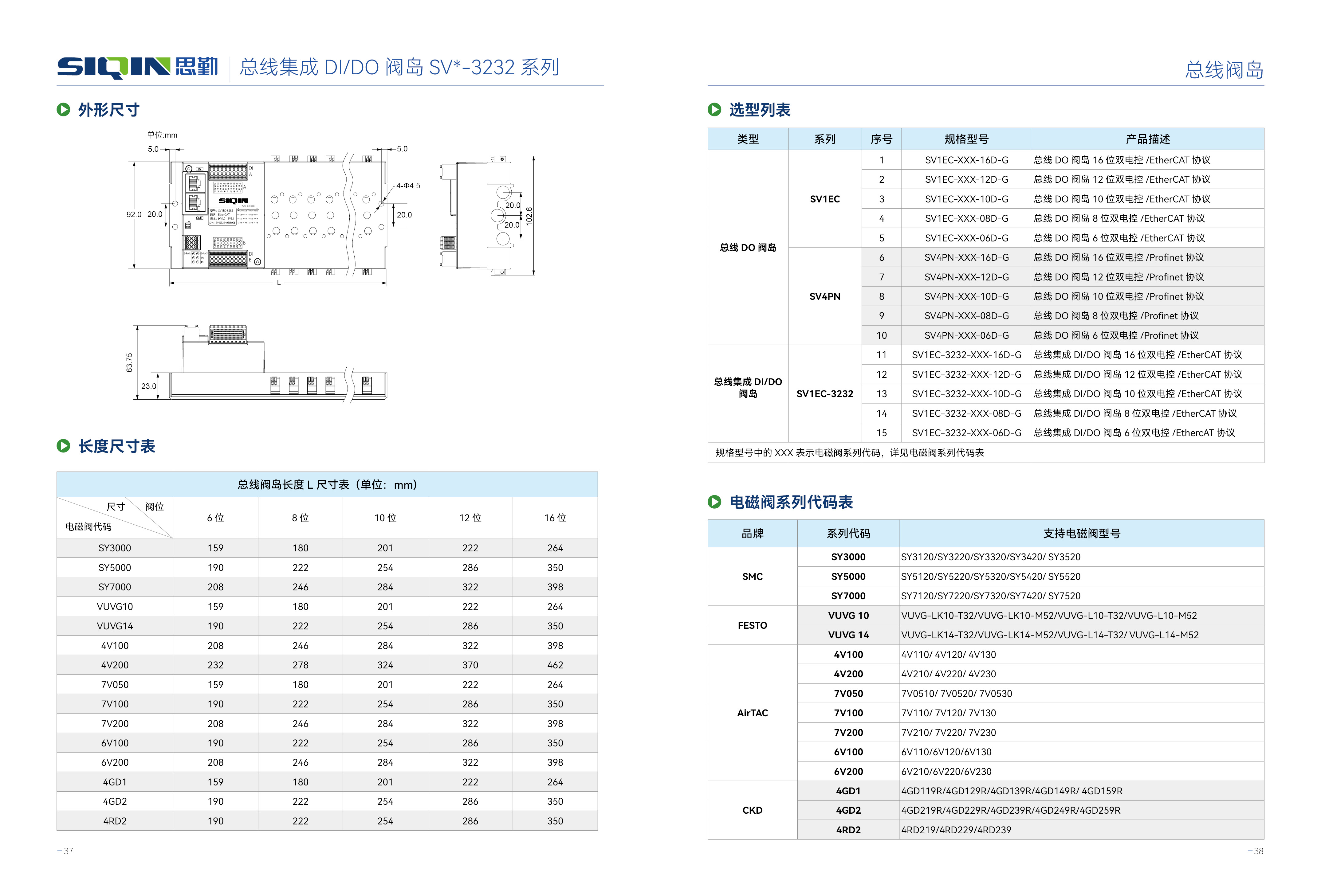 37SV1EC-3232-4RD2-10D-G阀岛 集成32DI 适用4RD2系列电磁阀   10位底座/EtherCAT协议
