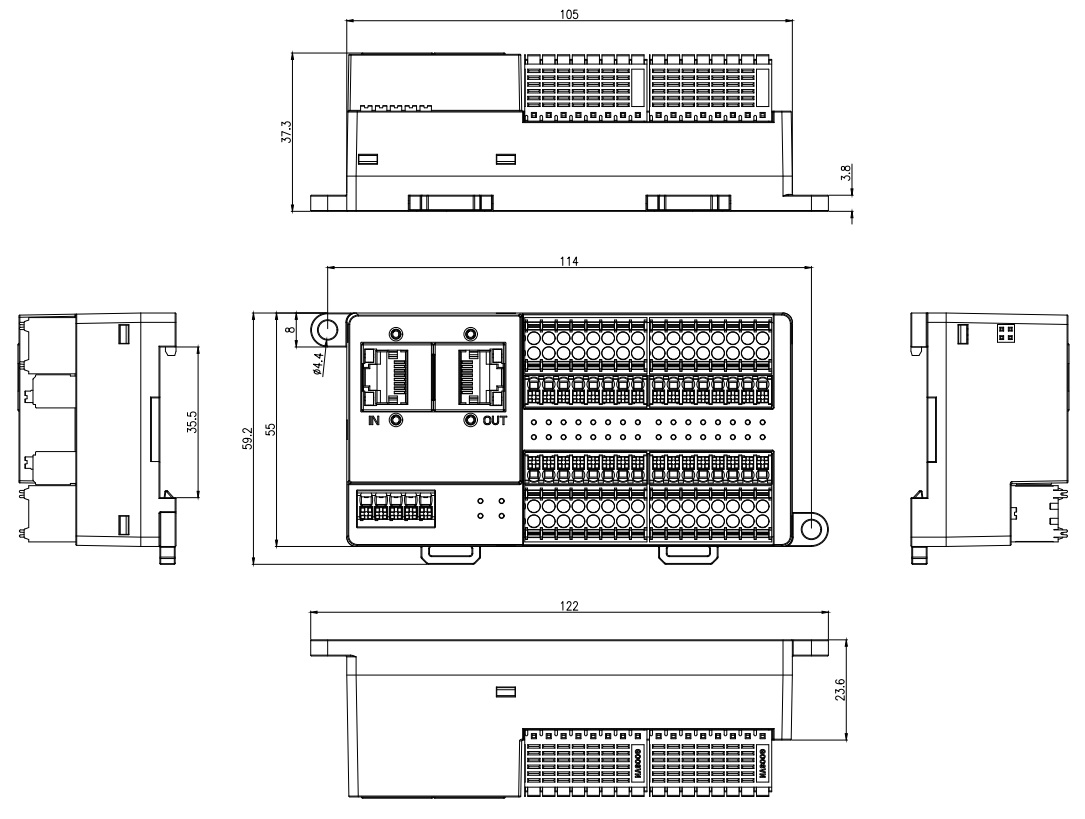 ④ 超小尺寸:32点机型长宽高为:105*55*37mm,节省空间,可灵活安装于狭小空间。