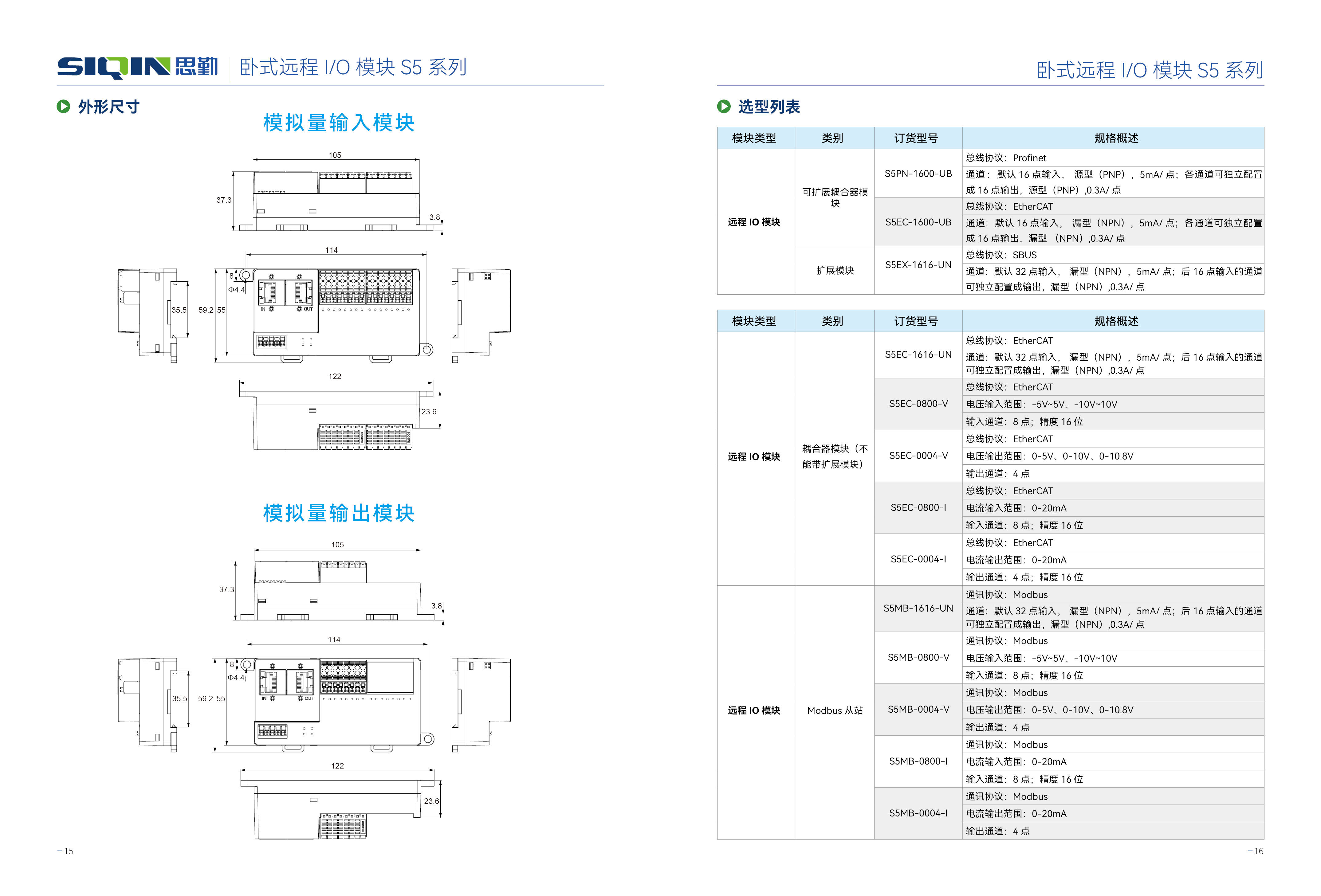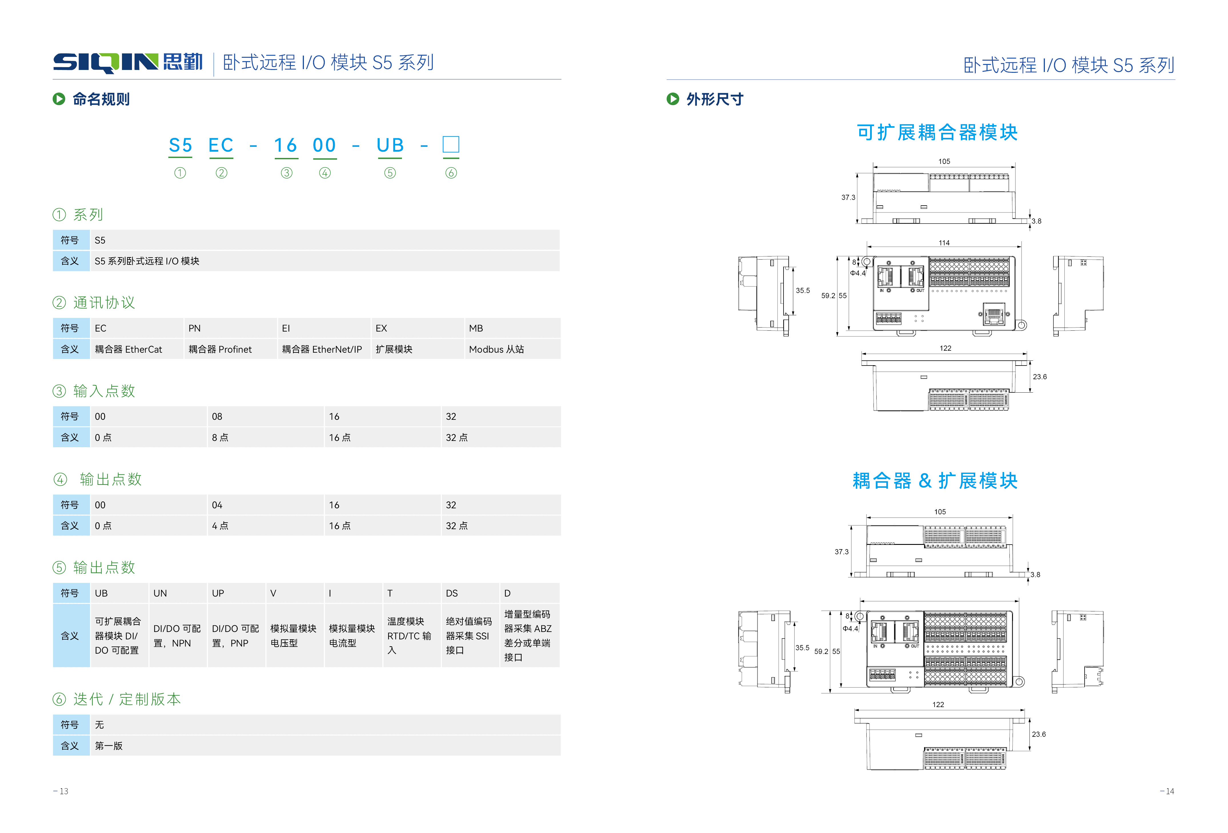 远程IO模块 | 耦合器模块(不能带扩展模块) | S5EC-1616-UN | 总线协议:EtherCAT |